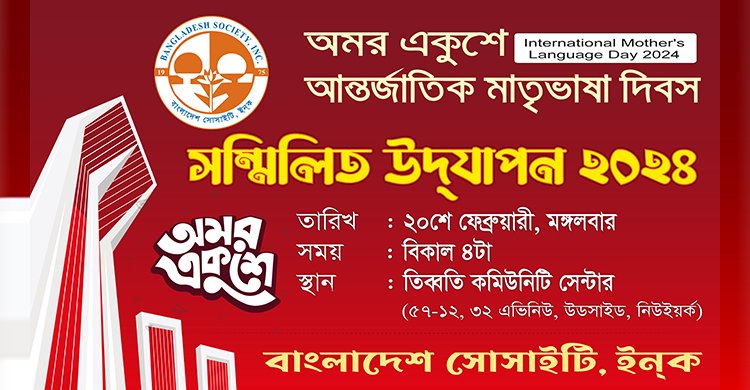 যুক্তরাষ্ট্রে প্রবাসী বাংলাদেশীদের আমব্রেলা সংগঠন বাংলাদেশ সোসাইটির উদ্যোগে প্রতিবছরের ন্যায় এবারও সম্মিলিত আন্তর্জাতিক মাতৃভাষা দিবস ও মহান শহীদ দিবস পালন
