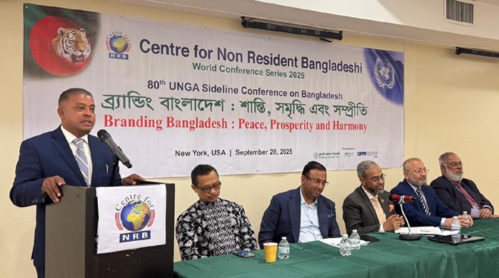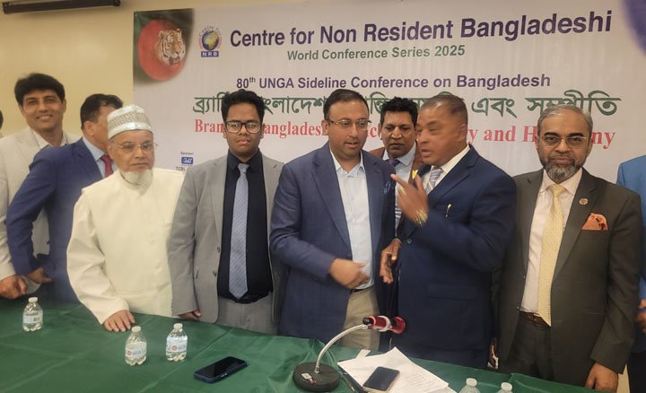 নিউইয়র্ক (ইউএনএ): জাতিসংঘের ৮০তম সাধারণ অধিবেশন ঘিরে সেন্টার ফর নন রেসিডেন্ট বাংলাদেশী (এনআরবি) গত ২৮ সেপ্টেম্বর ‘ব্র্যান্ডিং বাংলাদেশ : শান্তি, সমৃদ্ধি এবং সম্প্রীতি’ শীর্ষক সাইড লাইন কনফারেন্সের আয়োজন করে। এতে দেশ ও প্রবাসের বিশিষ্টজনরা অংশ নেন এবং বাংলাদেশ আর দেশের জনগণকে এগিয়ে নিতে সংশ্লিস্ট বিষয়ে তাদের গুরুত্বপূর্ণ মতামত তুলে ধরেন। সিটির জ্যাকসন হাইটসের একটি পার্টি হলে এই কনফারেন্স অনুষ্ঠিত হয়। খবর ইউএনএ’র।